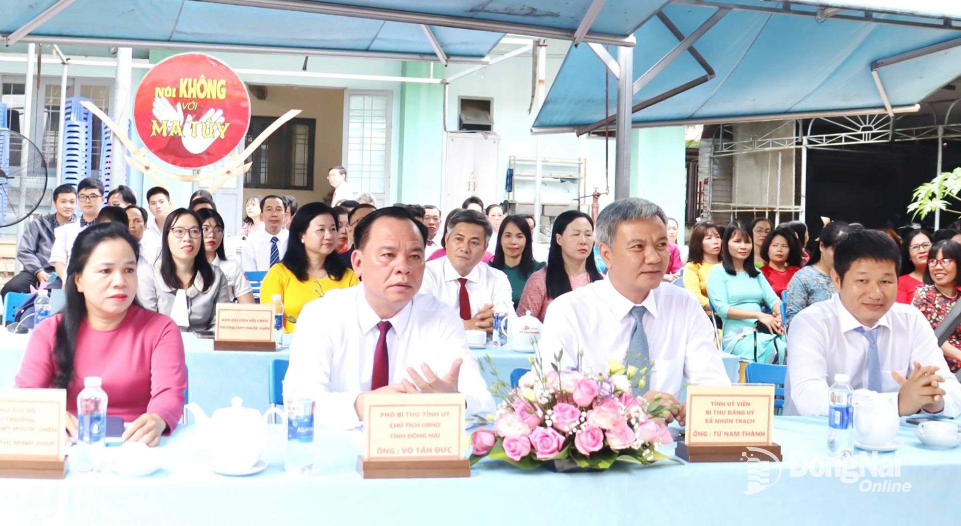 (ĐN) – Sáng 5-9, tại xã Nhơn Trạch, Phó Bí thư Tỉnh ủy, Chủ tịch UBND tỉnh Đồng Nai Võ Tấn Đức dự lễ khai giảng, chung vui với thầy, cô giáo và học sinh Trường THPT Phước Thiền. Các đại biểu dự lễ khai giảng tại Trường THPT Phước Thiền. Ảnh: Nguyệt Hà Cùng…
